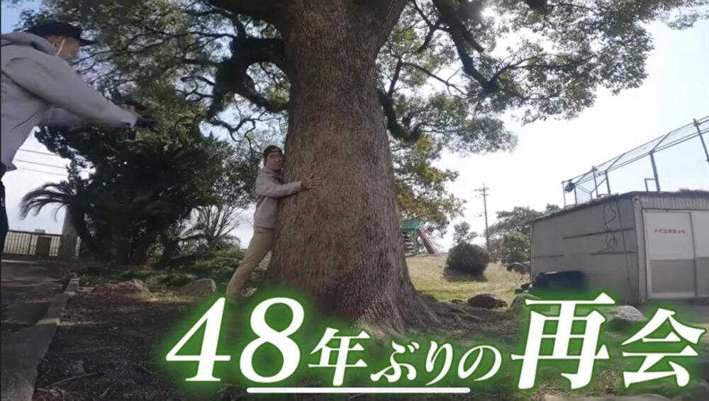 校庭に立つ大きな「くすの木」は、江頭さんが在学していた48年前からありました。